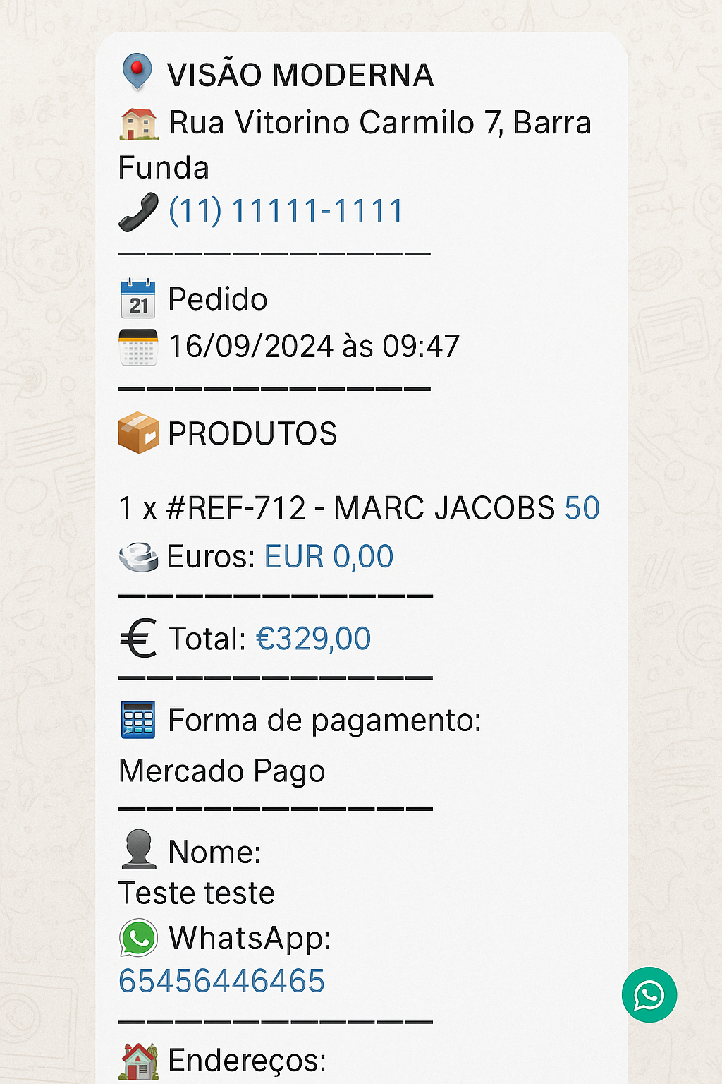 Todos os pedidos são encaminhados diretamente para o seu WhatsApp, facilitando a gestão e comunicação com o cliente.